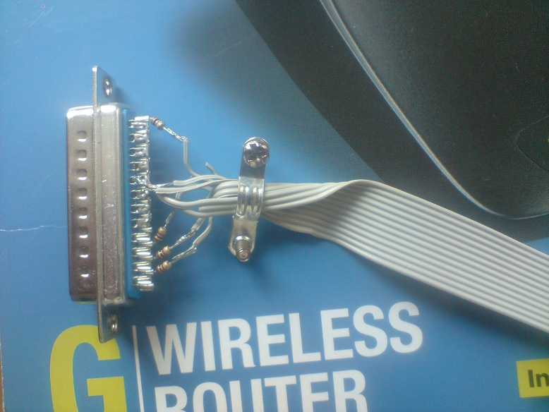 Kabelio ir pajungimų schemos labai paprastos kaina detalių apie 5 Lt (LPT female jungtis su dezute , 4 rezistoriai po 100 Ohm kabeliuko apie 30cm , 12 kontaktų jungtelė , bei jungtis lituojama ant routerio ), kiek daugiau problemų turėjau su pačiu routerio programavimu , galutina išiandien pabaigiau , aišku "Experience'o" tašku prisirinkau